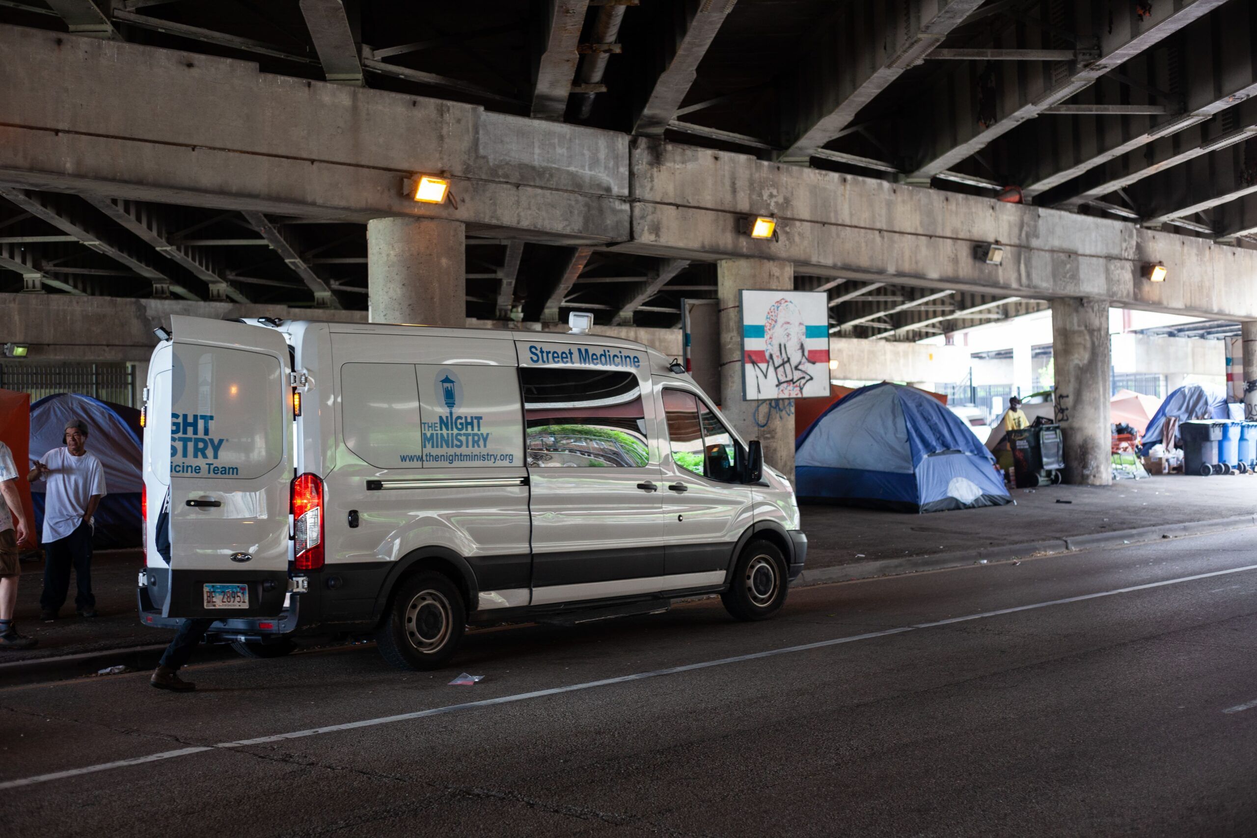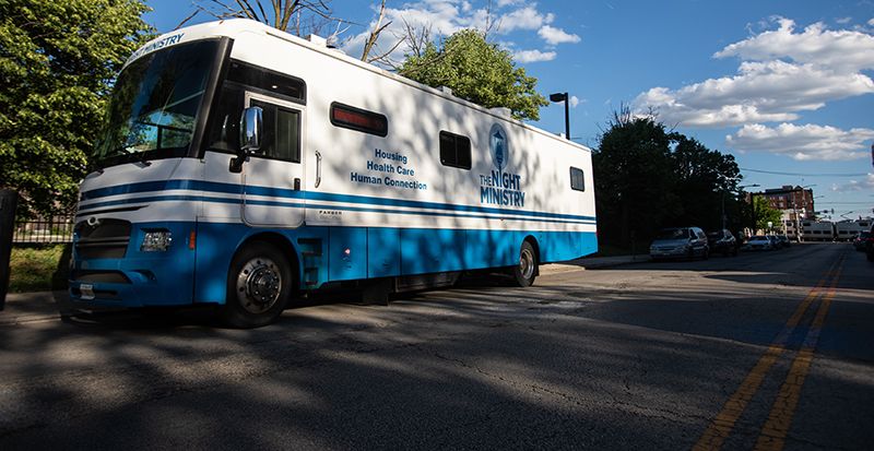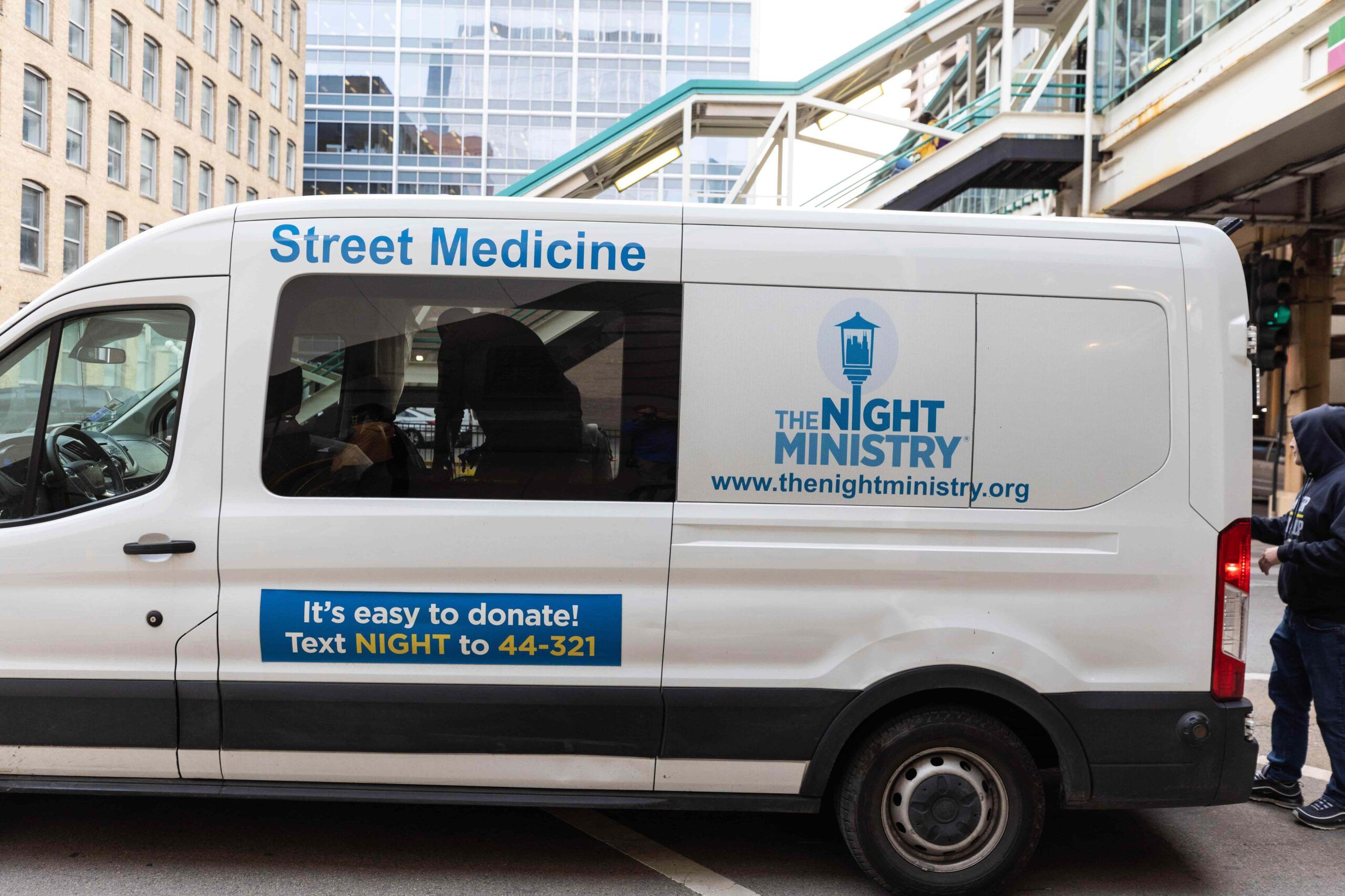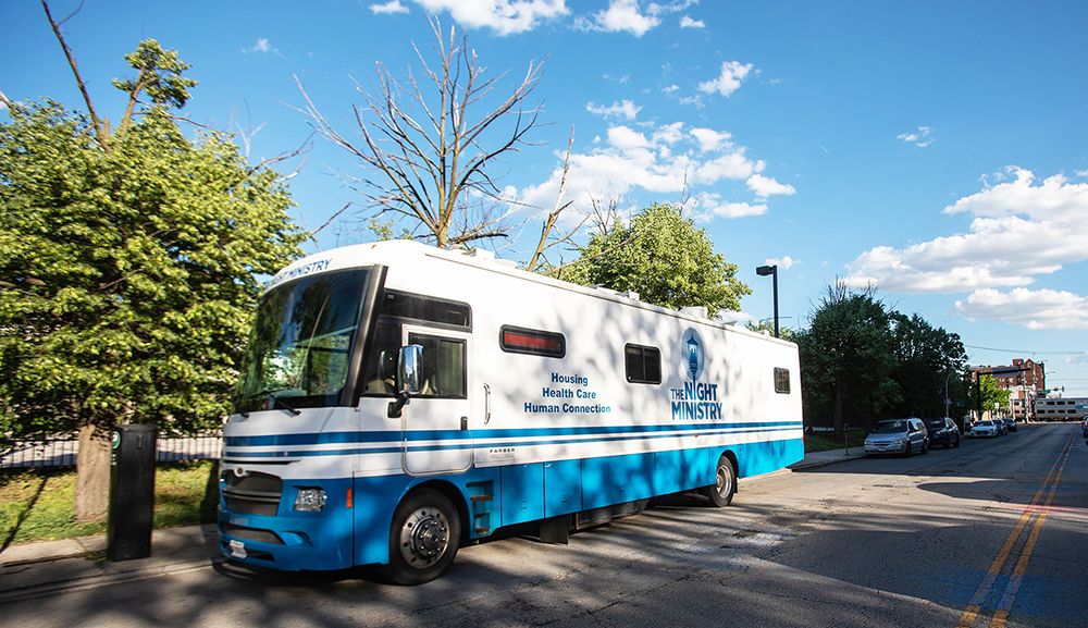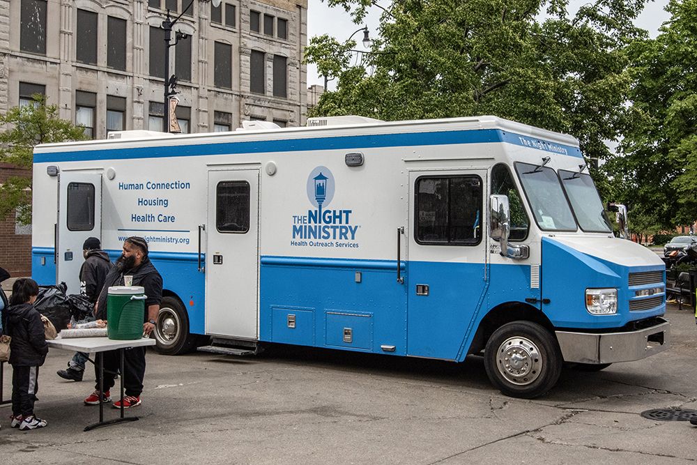 The Night Ministry’s Health Outreach Program provides free lifesaving care through its Health Outreach Bus and Street Medicine teams, which bring medical services, food, and essential supplies directly to people where they live — whether on the streets, under viaducts, or in encampments. Each year, these programs connect thousands of individuals with critical care, resources, and pathways to housing and stability.
