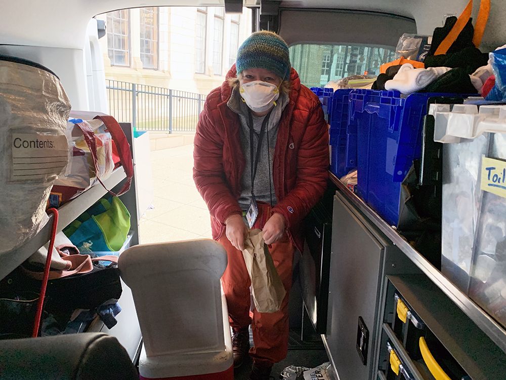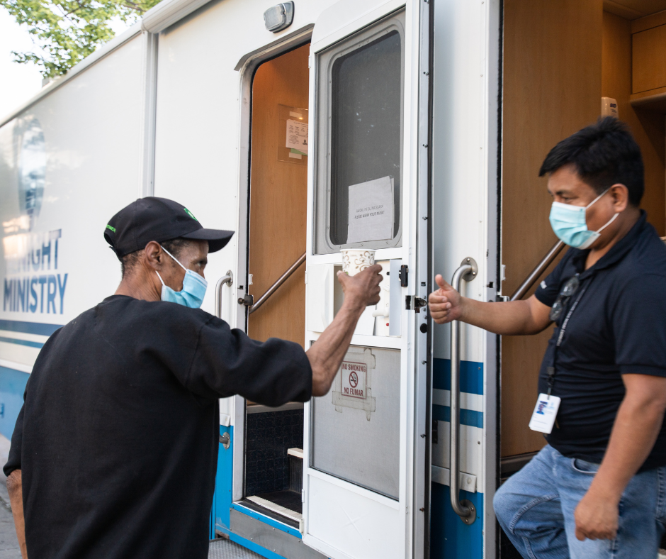 When an individual approaches the Health Outreach Bus for a meal or a cup of coffee, an invitation to connect is offered freely and without questions. As a person experiencing homelessness stays to chat with the Bus volunteers or consult with the Nurse Practitioner, relationships blossom. When all parties meet up again at the same spot week after week, a community comes together.