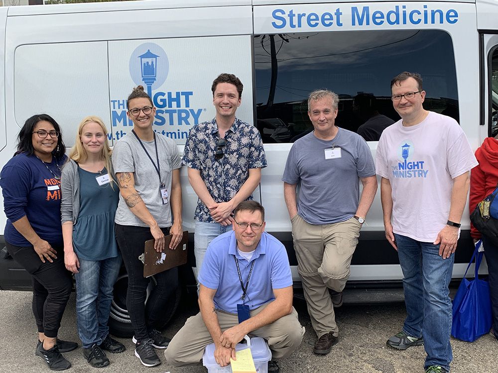 Ryan provides free health care to individuals who are experiencing homelessness, as a volunteer physician with The Night Ministry’s Outreach and Health Ministry Program, most often on the Street Medicine Team.