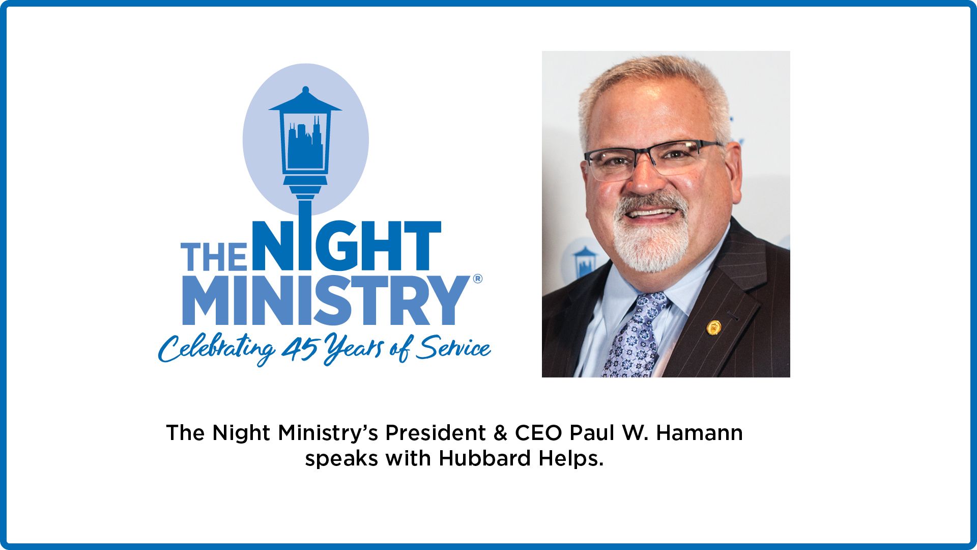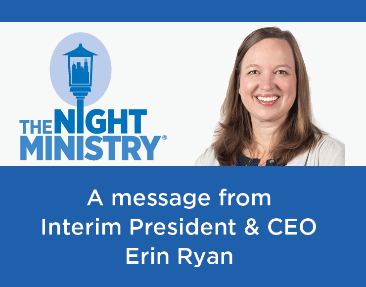 Then I ask you to join us in upholding the network of human connections woven by The Night Ministry. With you by our side, and with your support, we will continue to bring this most vital ingredient into lives of the members of our community whom we serve.