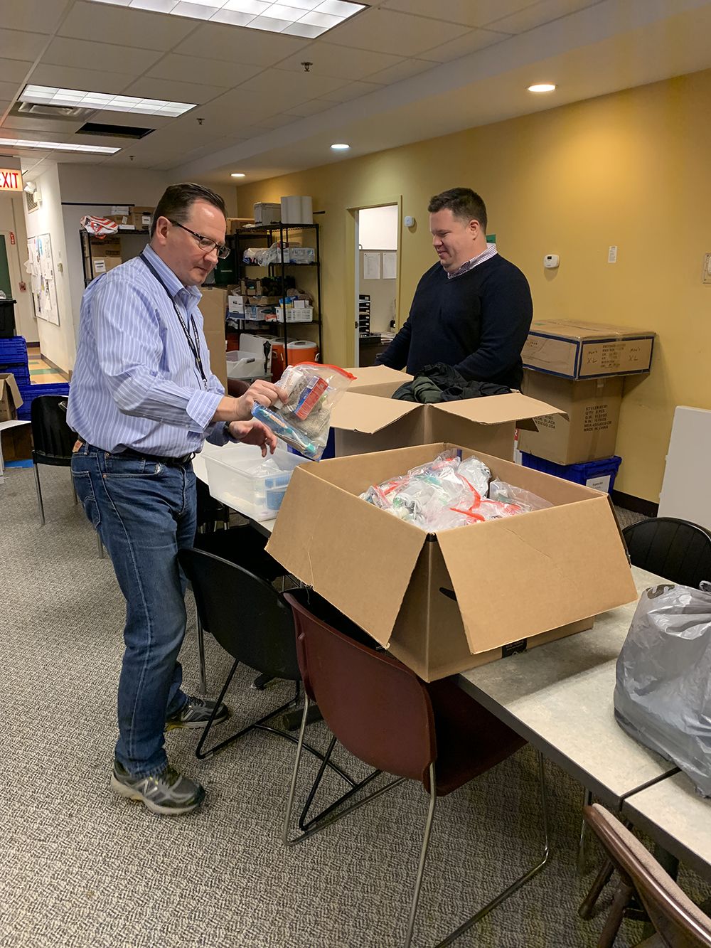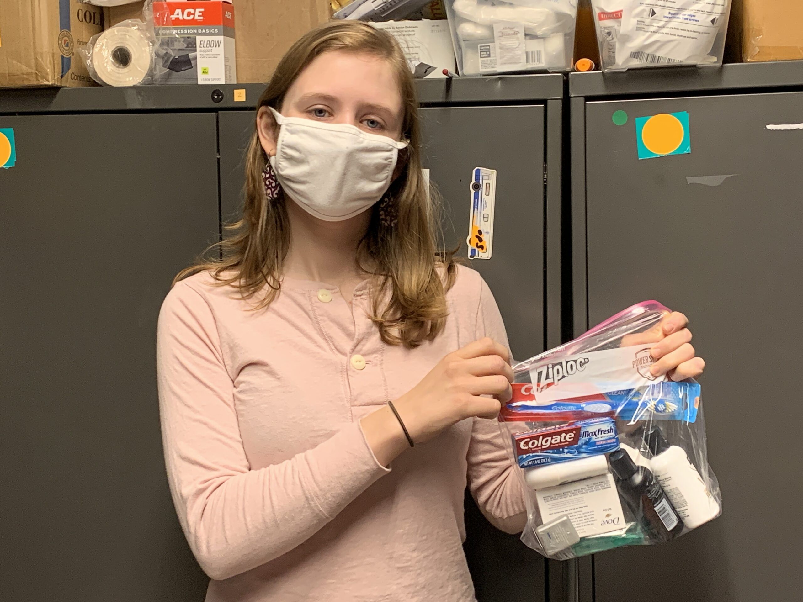 – Winter Hat – Pair of Warm Gloves – Pair of Adult Socks – Keychain Flashlight – Hand & Toe Warmers – Assorted Candy – Full-Size Deodorant – Travel-Size Lotion – Lip Balm – Bath/Body Wipes – Toothbrush – Travel-Size Toothpaste