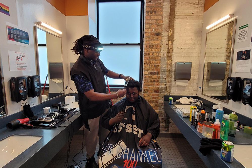 Seth Hilton gives a young man a haircut at The Crib in perpetration for the start of a new job.