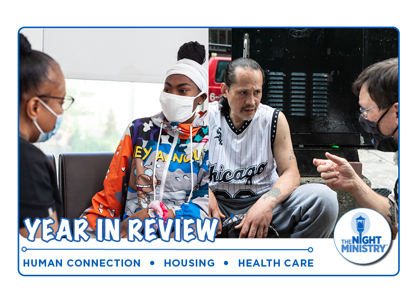 If you think about it, The Night Ministry has been providing human connection longer than housing, even longer than health care. When the Reverend Tom Behrens first hit the streets of Chicago’s North Side in 1976, his material offerings were limited to food, coffee, and blankets, all provided out of the trunk of his car. But Tom was out there primarily to respond to the isolation, loneliness, and despair felt by his fellow Chicagoans who had no place to stay at night, no network of family or friends to turn to, no secure place in the community. And he responded by offering human connection.
