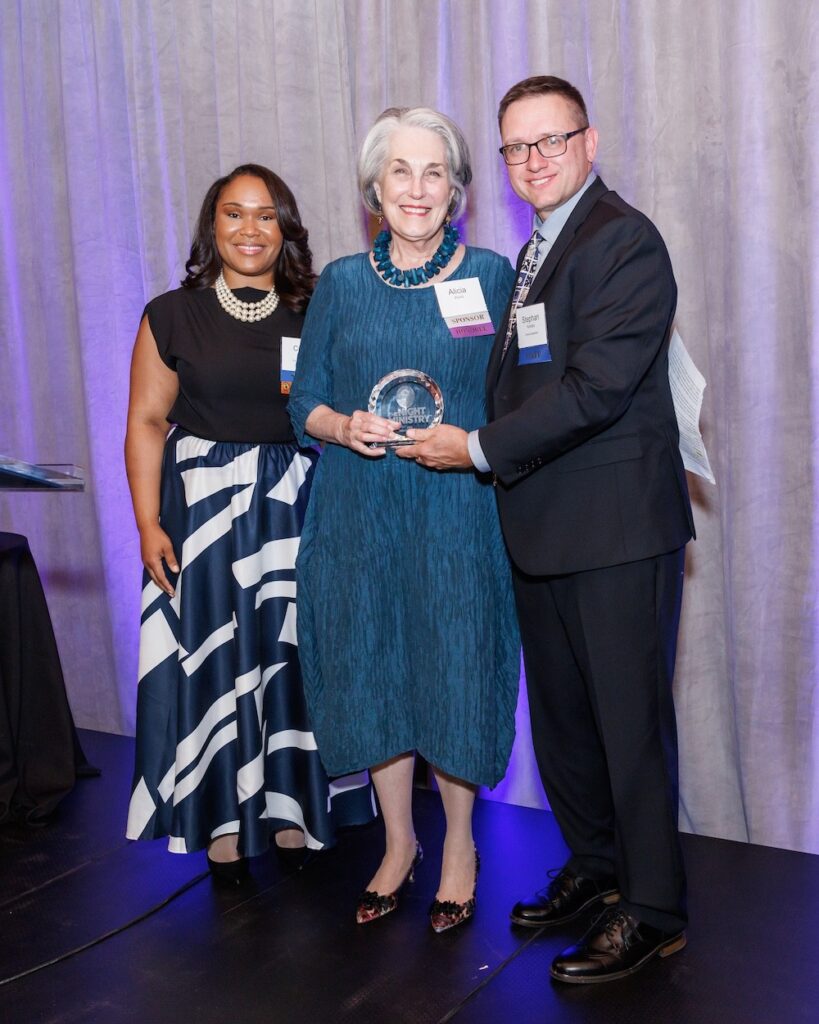 Alicia has demonstrated her deep commitment to the community by providing exceptional leadership and unwavering support for The Night Ministry. Through her many years of service on our Board of Directors, including several as Board Chair, and as a steadfast ambassador of our mission, Alicia has advanced the agency’s critical work, underpinning our ability to connect with our vulnerable neighbors and help them improve their lives.
